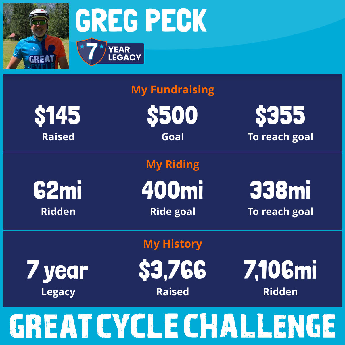 I am riding 400 mi for Mary ann Peck. Please sponsor me and support my challenge to fight kids' cancer and save little lives.