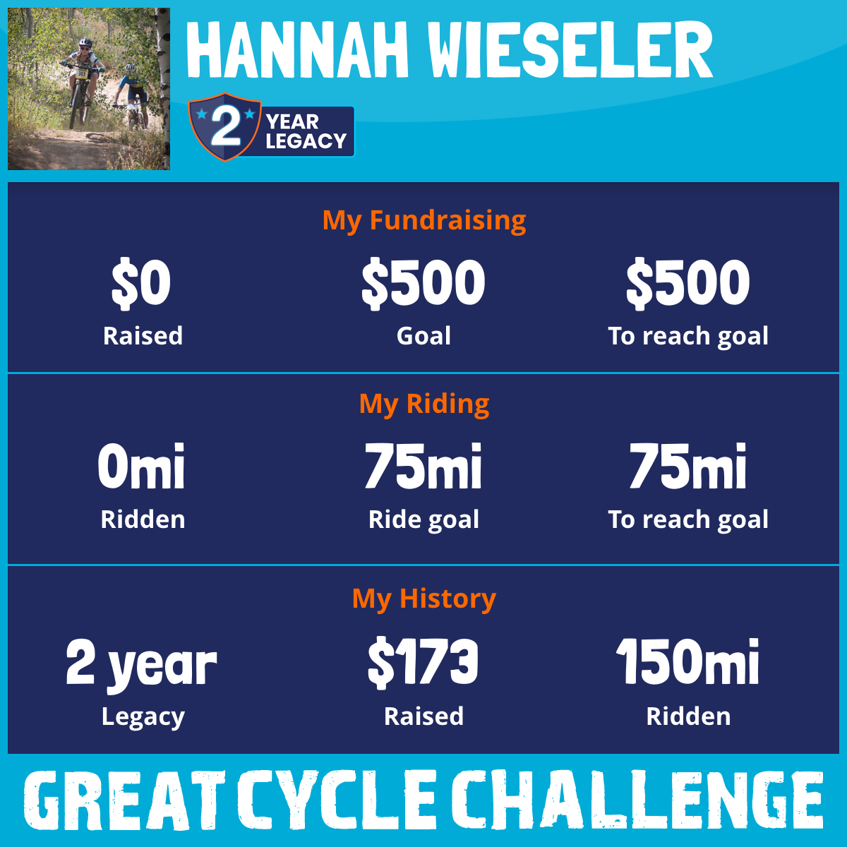 150 mi Ridden$173 Raised2018