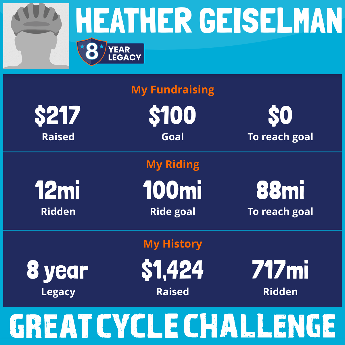 I am riding 100 mi for Aunt Char. Please sponsor me and support my challenge to fight kids' cancer and save little lives.