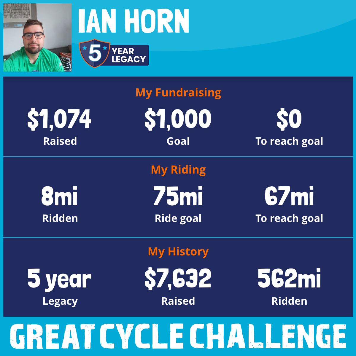 I am riding 75 mi to fight kids' cancer and save little lives. Please sponsor me to support my challenge!