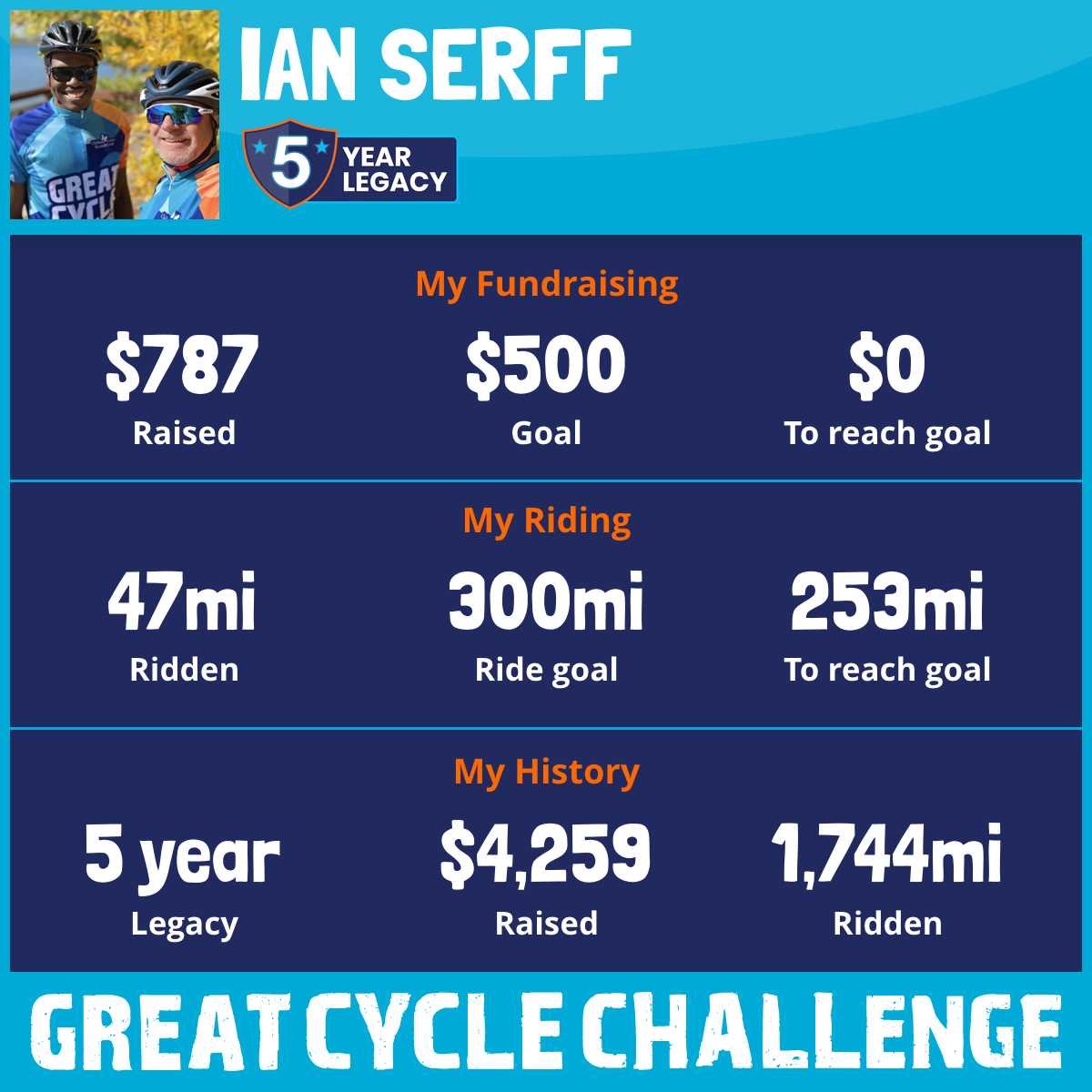 365 mi Ridden$2,522 Raised2025
