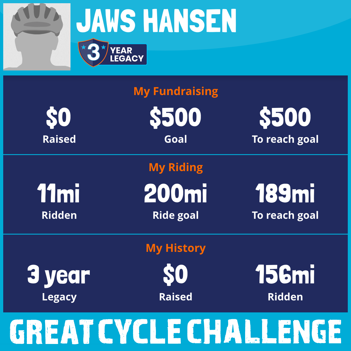 I am riding 200 mi to fight kids' cancer and save little lives. Please sponsor me to support my challenge!