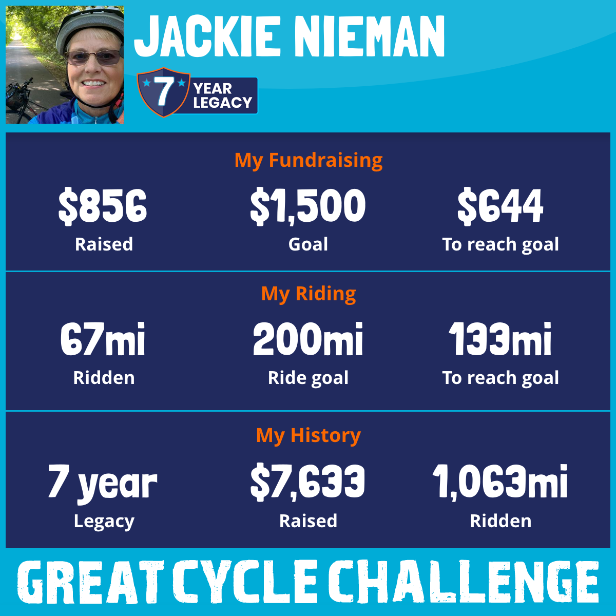 This Is the seventh year that I am taking part in the Great Cycle Challenge to fight kids' cancer! Even though the challenge will happen in September, fundraising begins now. None of my summer miles count, but September is truly a challenge for me. I will, again, be babysitting full time by then and will need to be motivated to ride each evening!