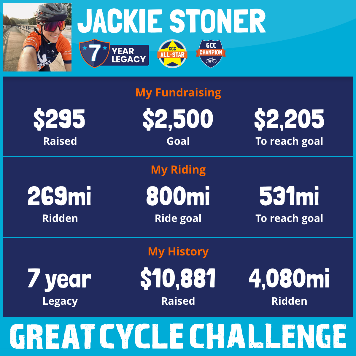 Cycling has and continues to be a defining activity in my life. I started riding a spin bike in my mid-late twenties at the local gym. Having an hour to myself while my kids were little was imperative to my mental and physical well-being. The first few years riding the Great Cycle Challenge were indoors training to teach spin classes with the Les Mills RPM program. Like a lot of folks when covid happened I was forced out of the gym. I remember going on a local group ride on my heavy commuter bike. I pushed so hard for 20 miles to stay with the group but often lagged behind everyone else. I scoured FB marketplace for an entry-level road bike, the same one pictured in my profile. I don't think I've stepped foot in a gym since that day.