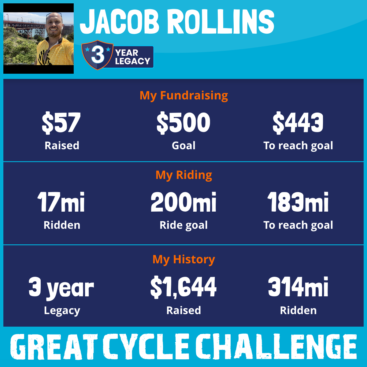 200 mi Ridden$1,083 Raised2022