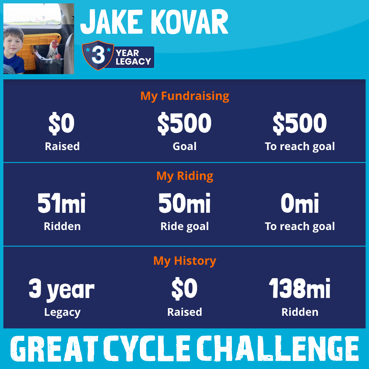 I am riding 50 mi in memory of Great Grandparents. Please sponsor me and support my challenge to fight kids' cancer and save little lives.