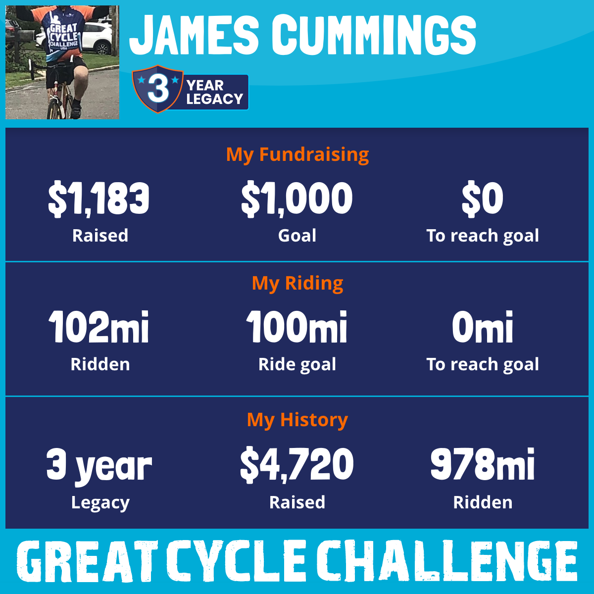 102 mi Ridden$1,183 Raised2025
