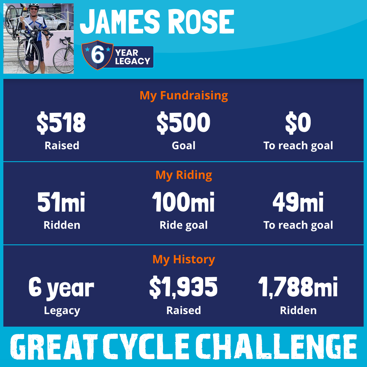 432 mi Ridden$50 Raised2021