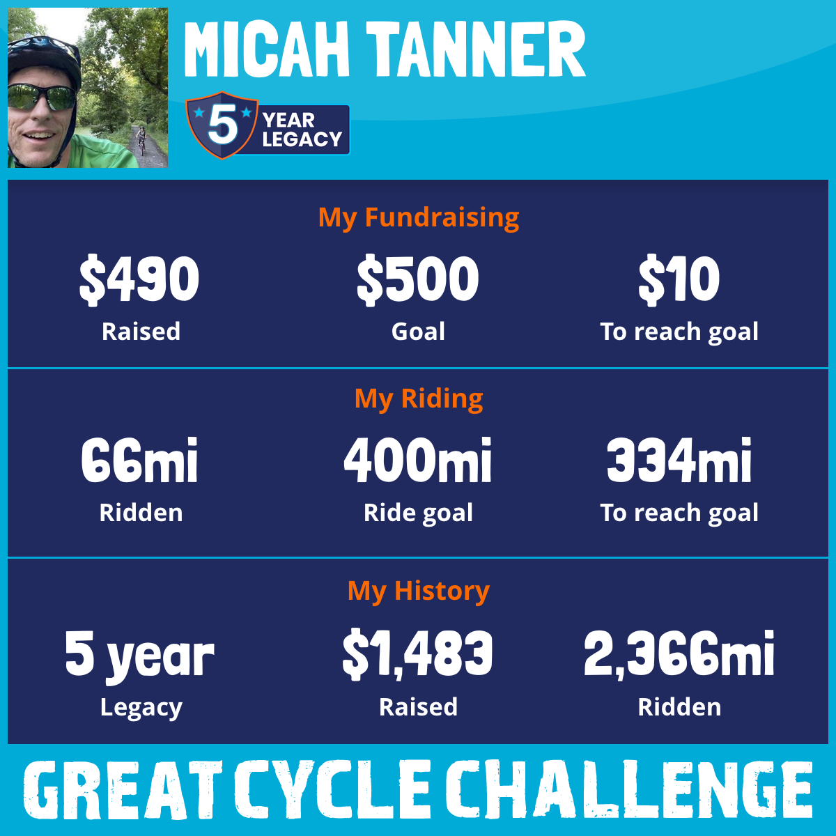 I am riding 400 mi in memory of Grandpa Tanner. Please sponsor me and support my challenge to fight kids' cancer and save little lives.