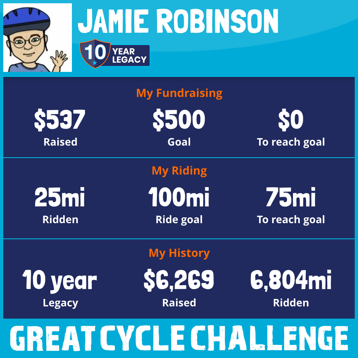 This September, I am taking part in the Great Cycle Challenge to fight kids' cancer for the 10th year. While my distance is certainly not what it used to be, I'm glad to be able to take an active part. Please consider a donation, no matter how small (or large) especially this year with the massive funding cuts.