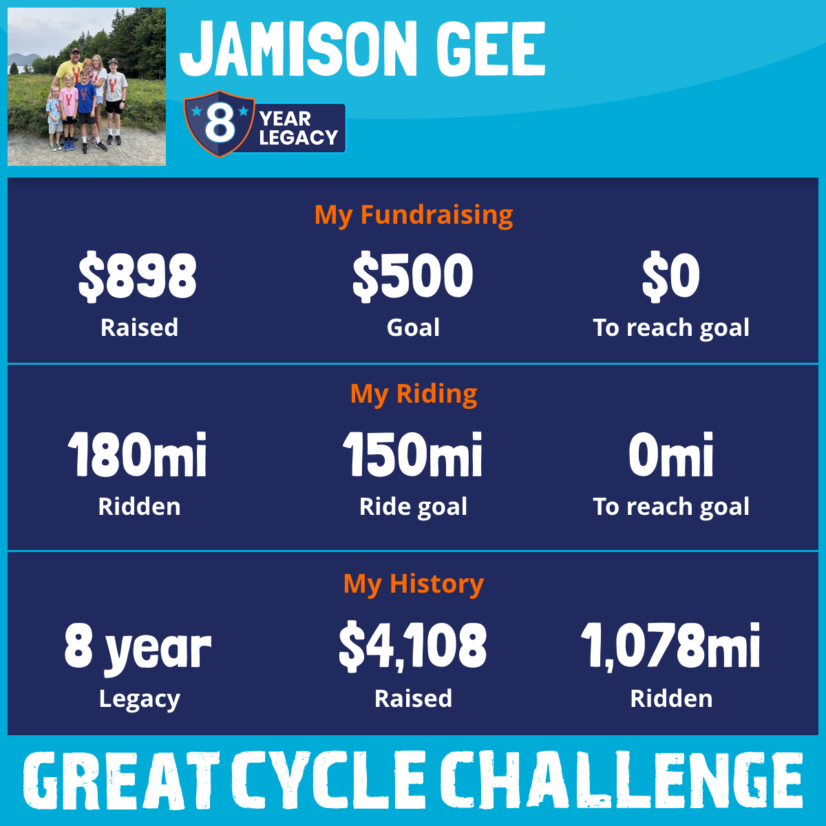 180 mi Ridden$898 Raised2025