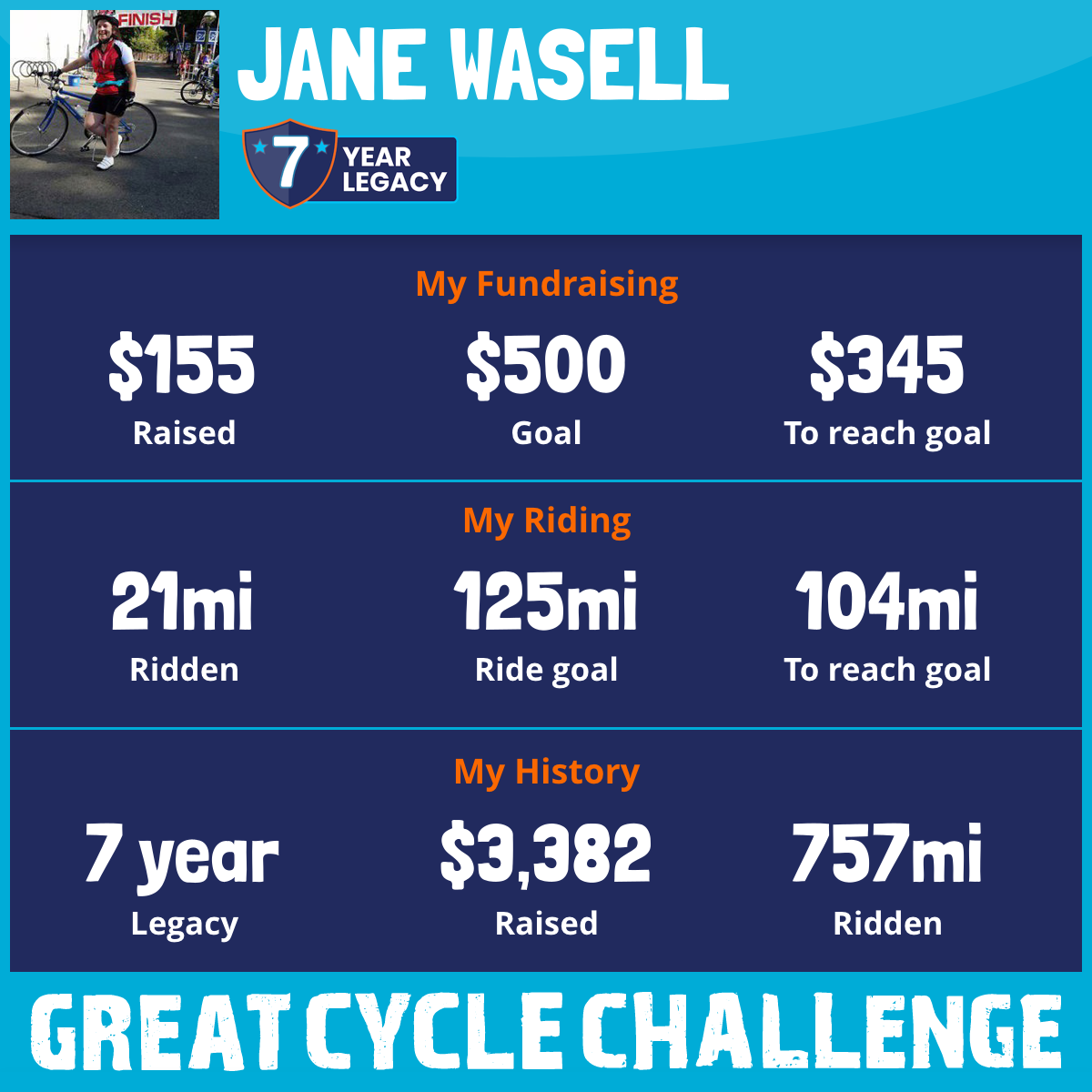 123 mi Ridden$1,127 Raised2025