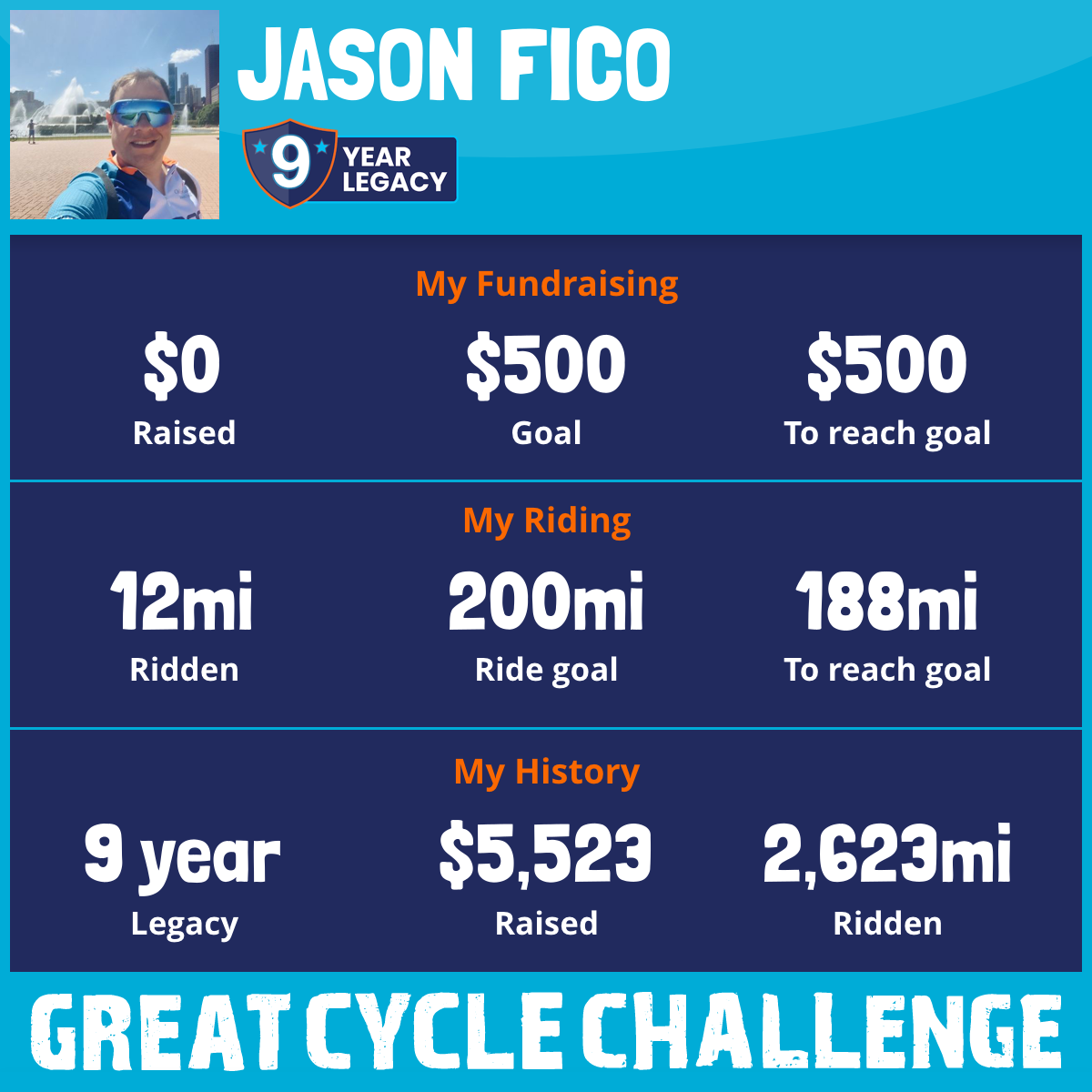 I am riding 200 mi in memory of my brother, DUSTIN FICO. Please sponsor me and support my challenge to fight kids' cancer and save little lives.