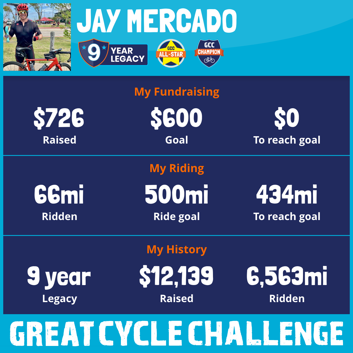 1,003 mi Ridden$1,048 Raised2023