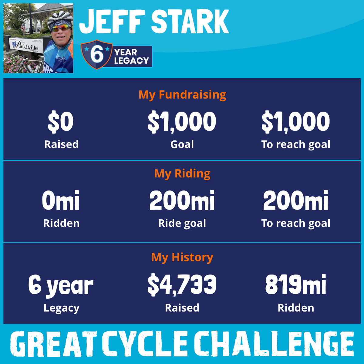 "I’m back…" This September, I am taking part in the Great Cycle Challenge to fight kids' cancer for the SIXTH straight year! If you were part of my pit crew in 2018, 2021, 2022, 2023 and 2024 our donations raised an outstanding $5,463 and inspired me to ride 876 miles!!!!!