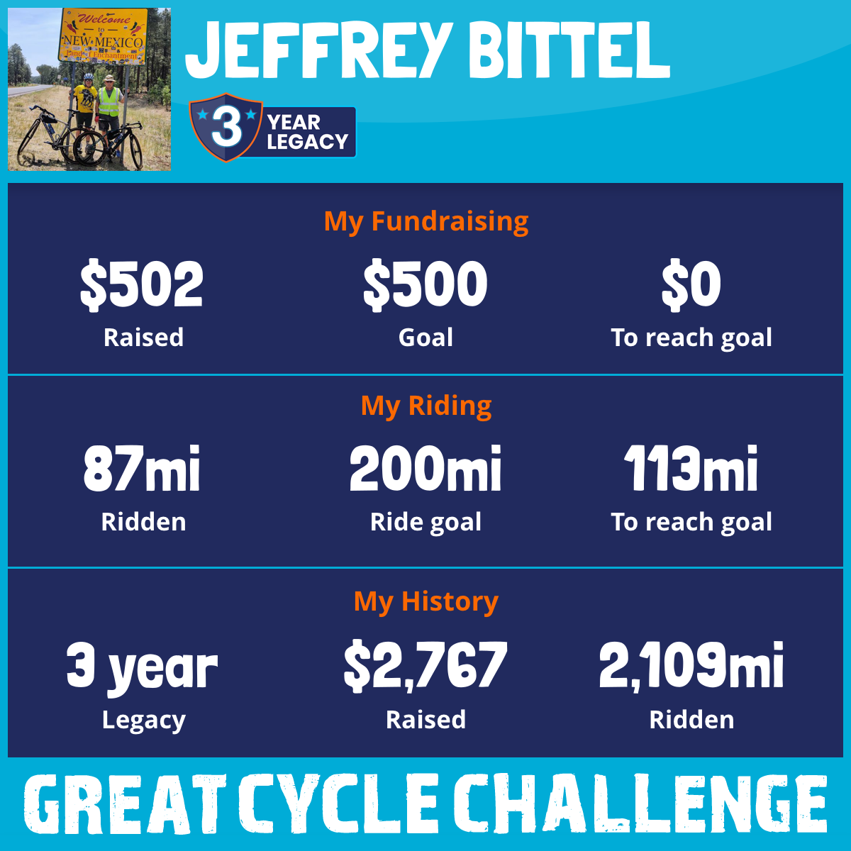 1,181 mi Ridden$1,038 Raised2023