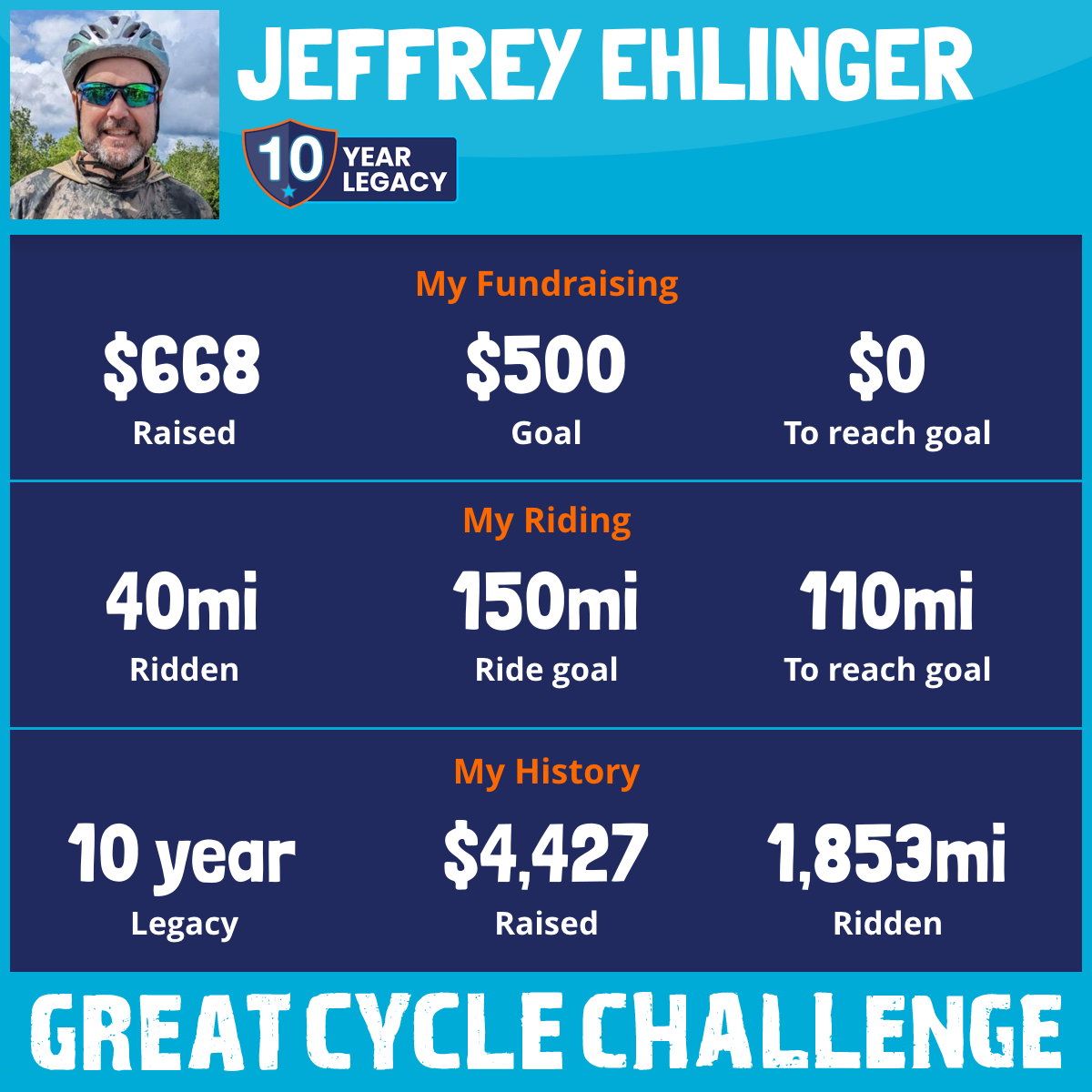 In September 2025 I will once again take part in the Great Cycle Challenge to fight kids' cancer... Why? Because cancer is the biggest killer of children from disease in the US. Sadly, over 15,000 children are diagnosed every year. Please support my ride by making a donation to GACC. Your support will change young lives. Thank you.