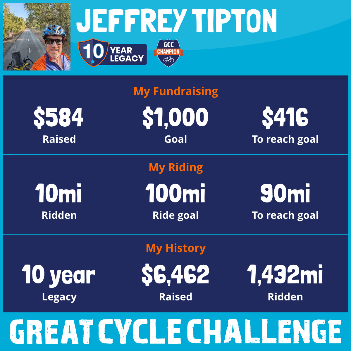 104 mi Ridden$1,001 Raised2023