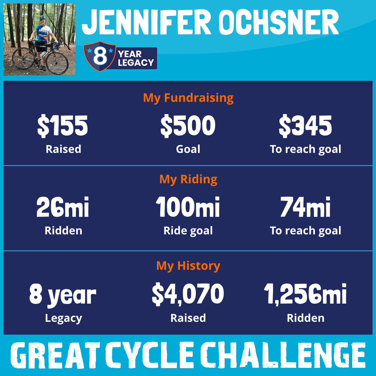 🚴‍♀️ This September, I'm riding 100 miles in the 2025 Great Cycle Challenge to fight kids' cancer—and this year is extra special because it’s my 8th year participating! 💛