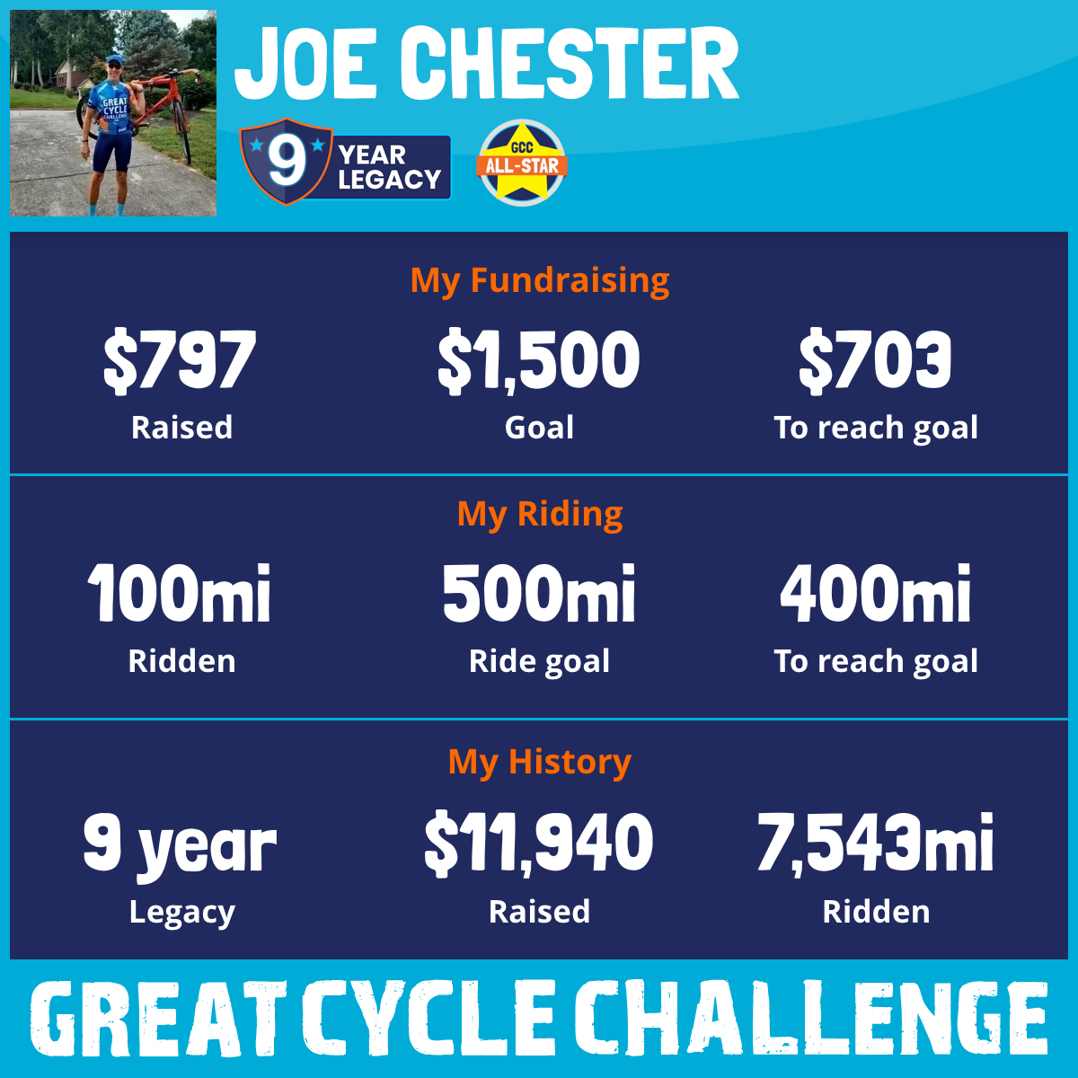 Ok..this September will be my 9th year riding in the Great Cycle Challenge to fight kids cancer. Once again I'll be spending the month riding hopefully 500 miles to raise $1500 or more for these brave kids who are fighting for their lives. Over the previous 8 years you've supported me in riding nearly 7500 miles and donating over $11,400. You all are amazing!