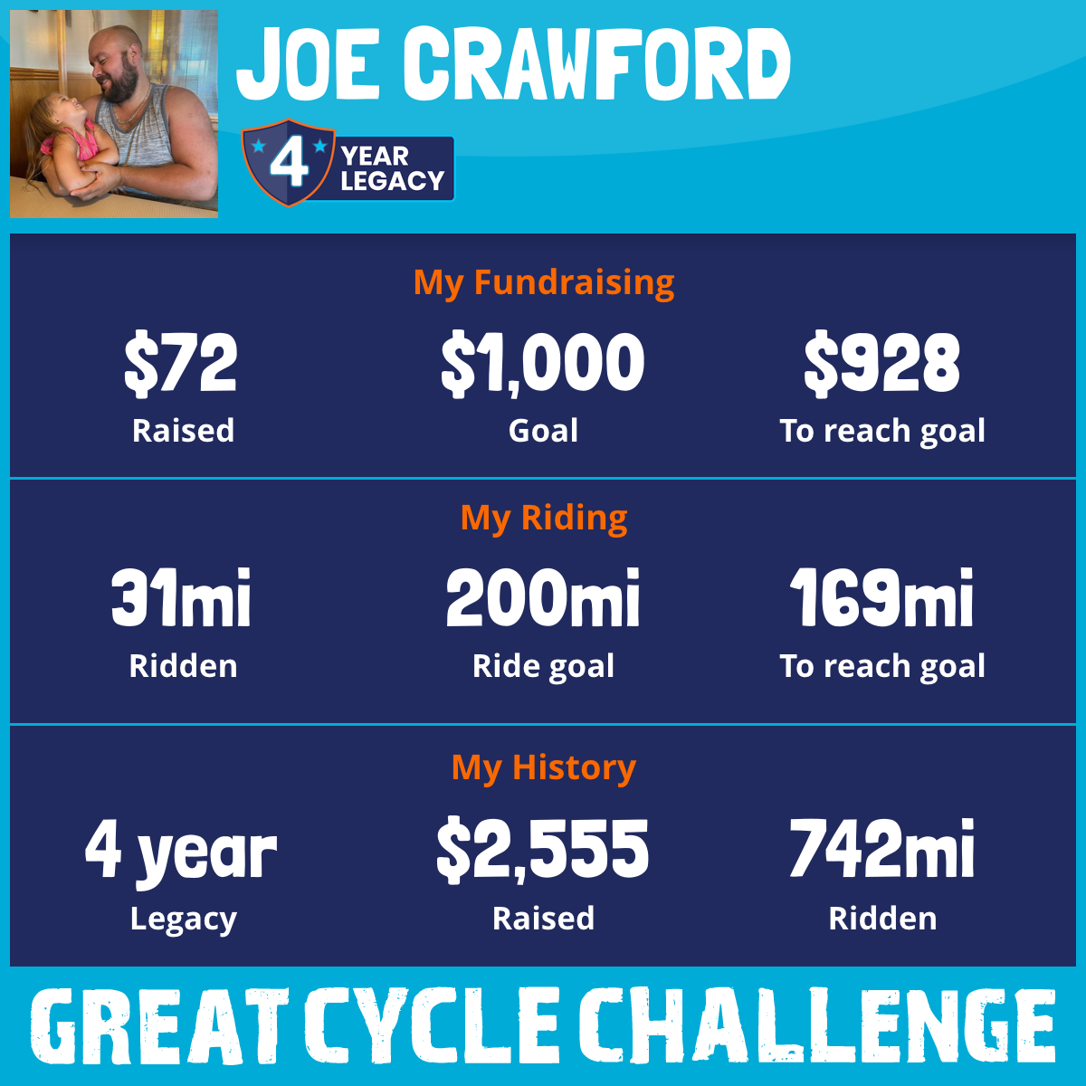 200 mi Ridden$1,021 Raised2024