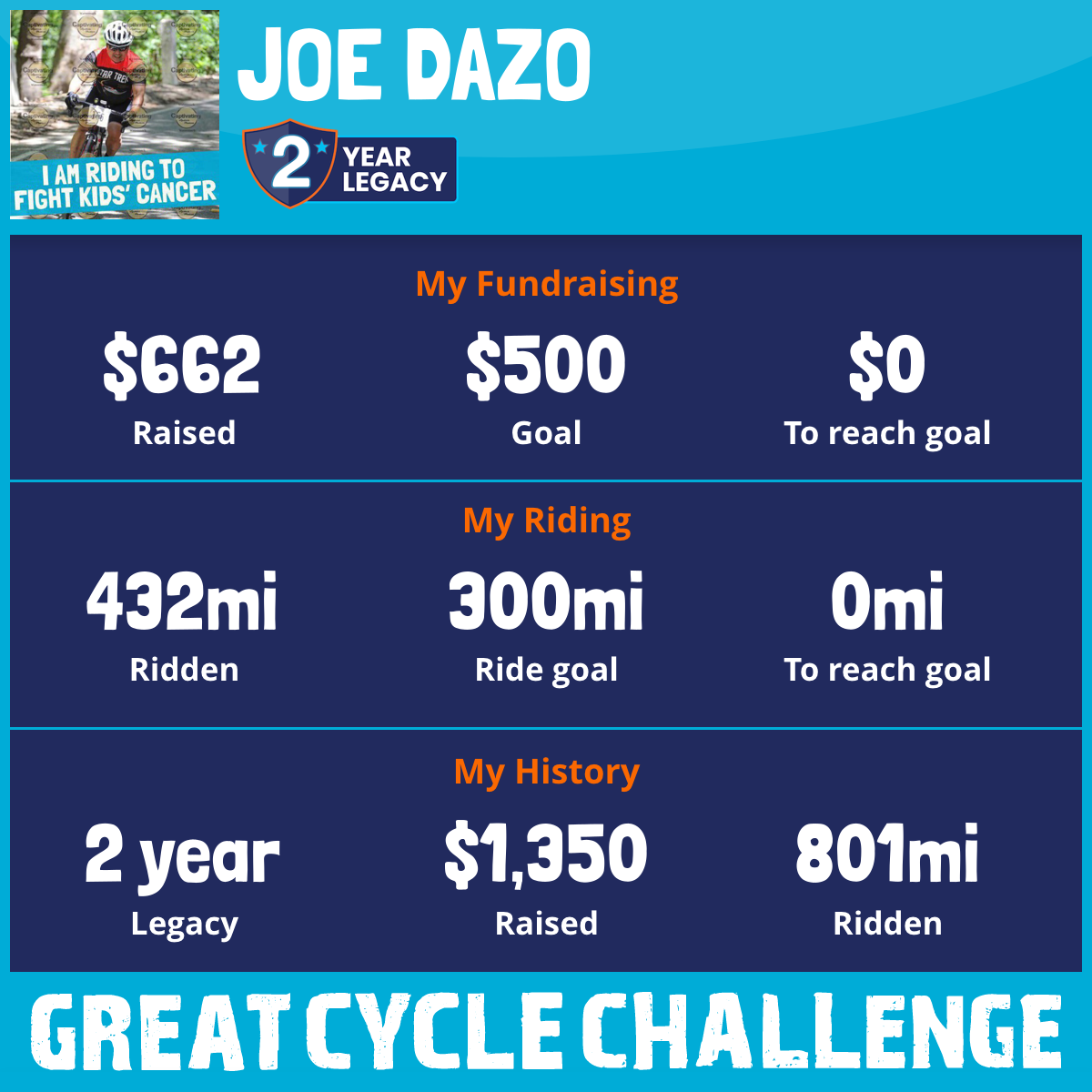 I am riding 400 mi to fight kids' cancer and save little lives. Please sponsor me to support my challenge!