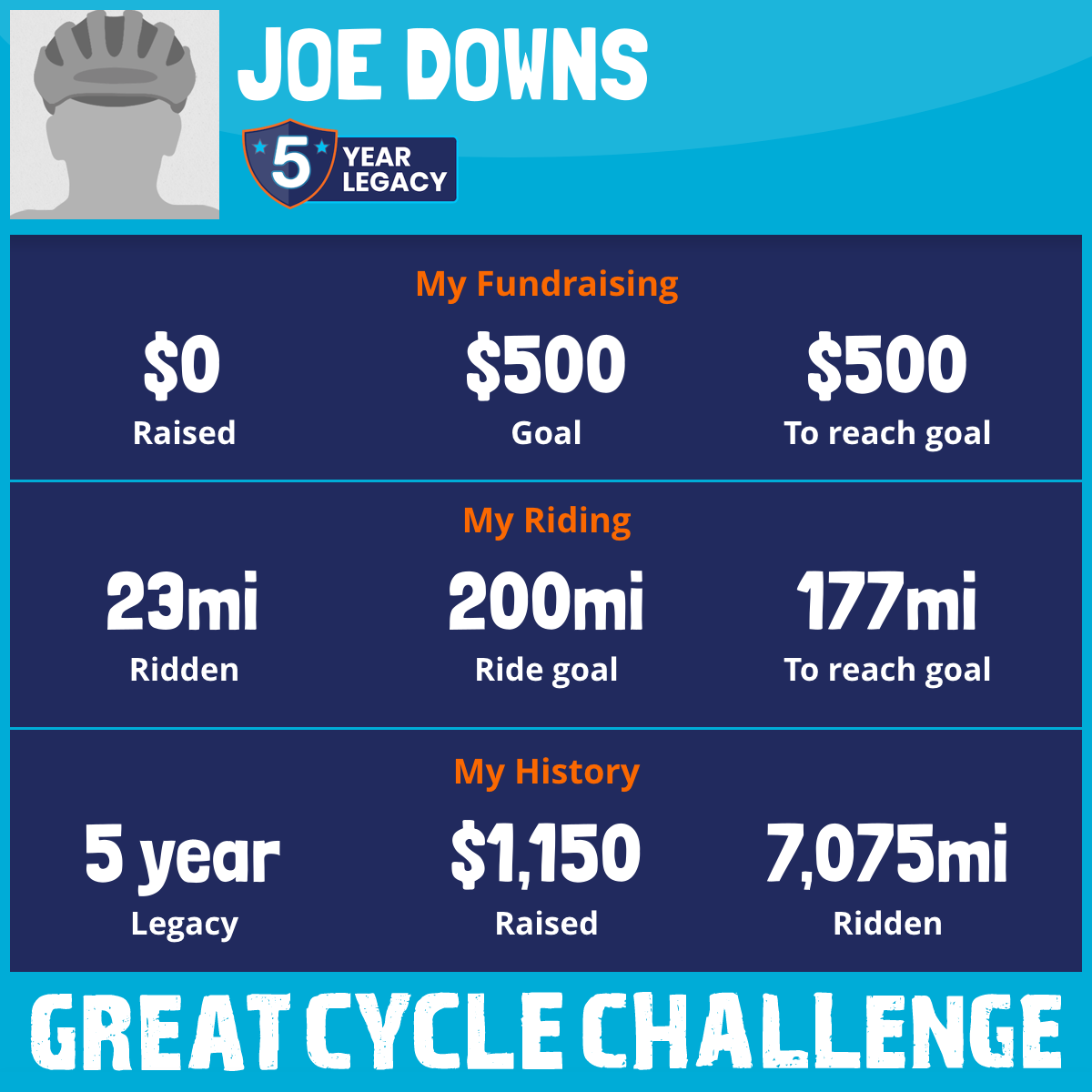 I am riding 200 mi for Marcia Downs. Please sponsor me and support my challenge to fight kids' cancer and save little lives.