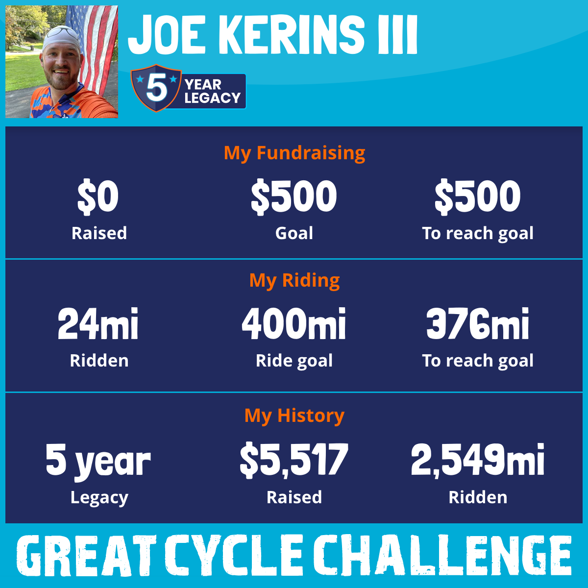 1,024 mi Ridden$1,185 Raised2021