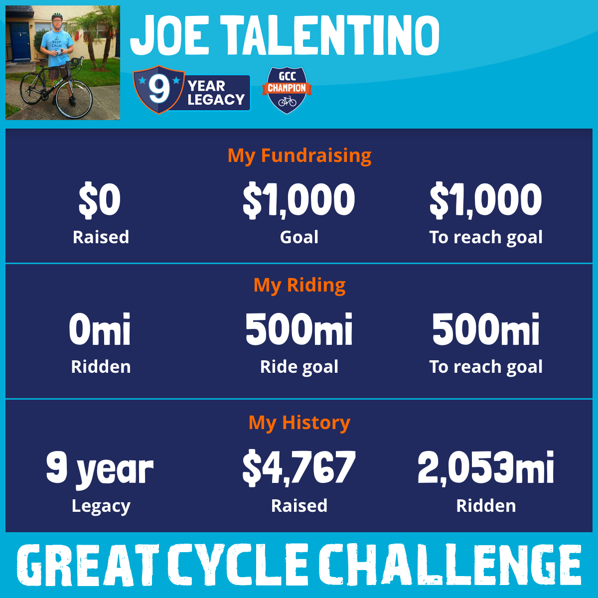 I am riding 500 mi in memory of Susanne Talentino. Please sponsor me and support my challenge to fight kids' cancer and save little lives.