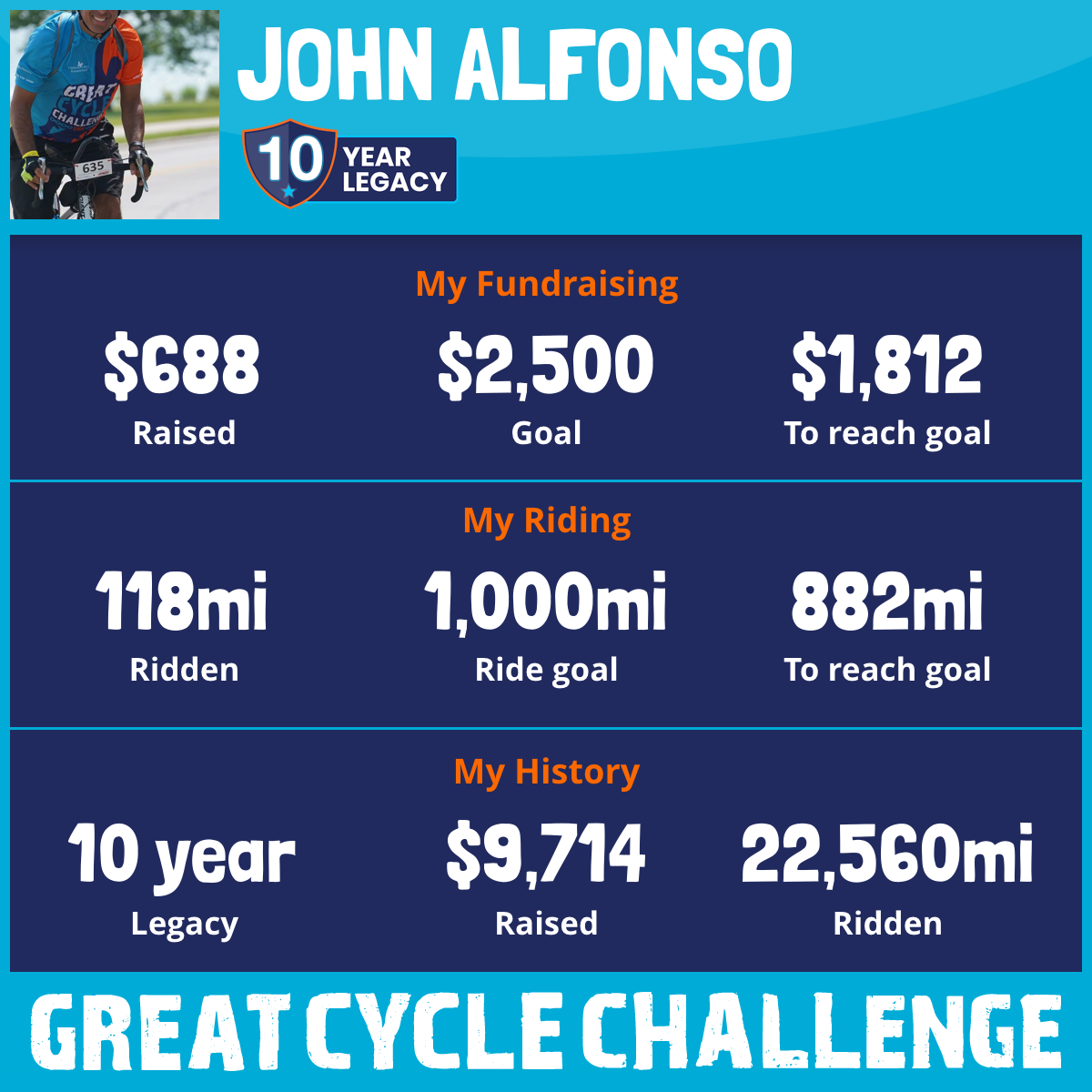 3,378 mi Ridden$1,081 Raised2023