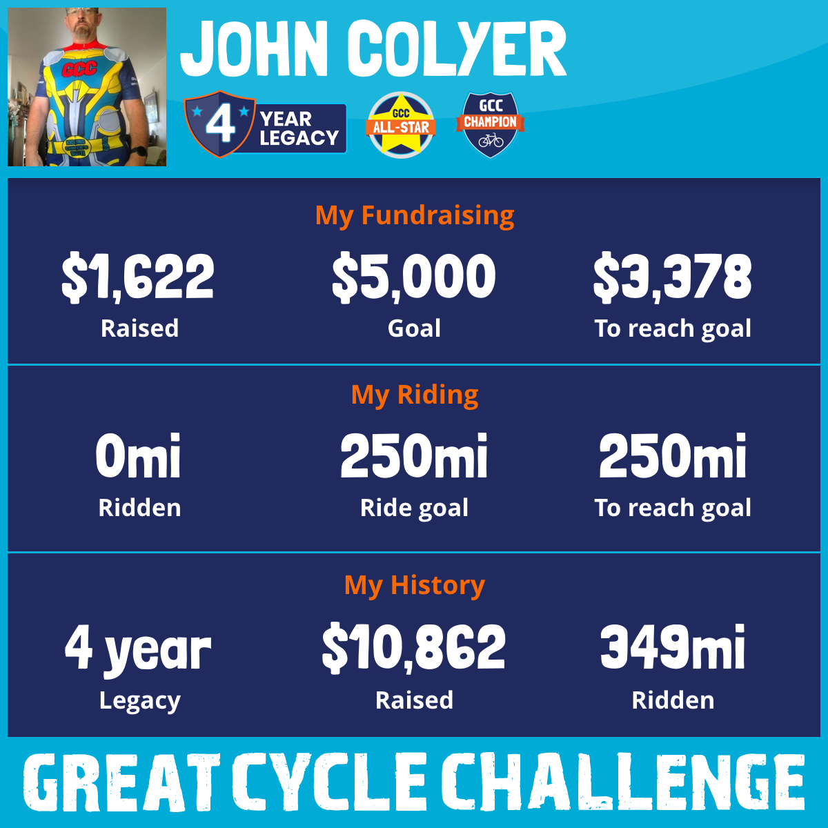 Here we go! Riding my fourth year in the Great Cycle Challenge, and kids cancer is even closer to home...