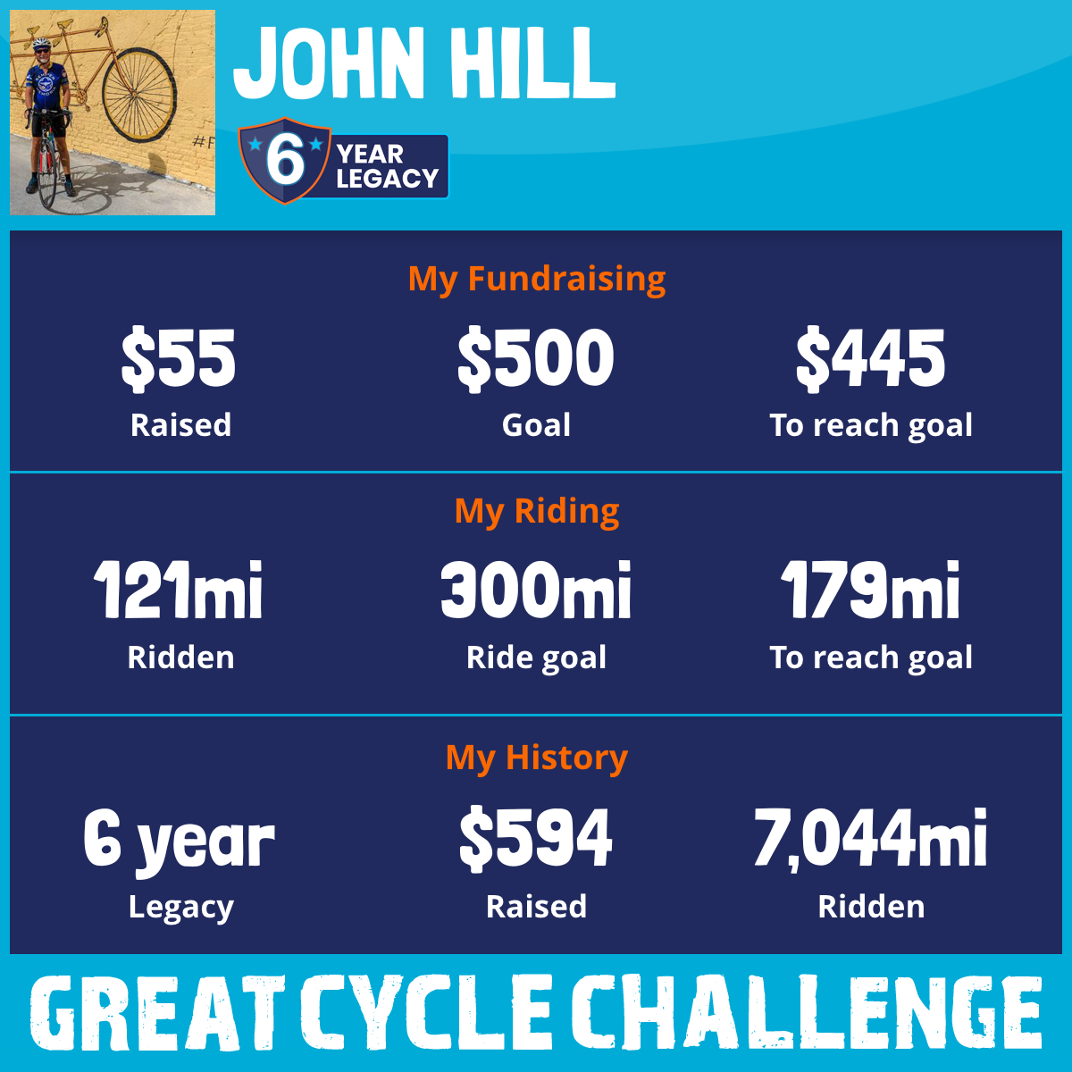 I am riding 300 mi for Anne Hill. Please sponsor me and support my challenge to fight kids' cancer and save little lives.