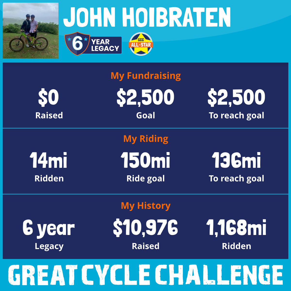 This September, I am taking part in the Great Cycle Challenge to fight kids' cancer! Last year with your help, I was able to raise $2,630 towards this great charity and this year I want to see if we can push to $3,000!!!!
