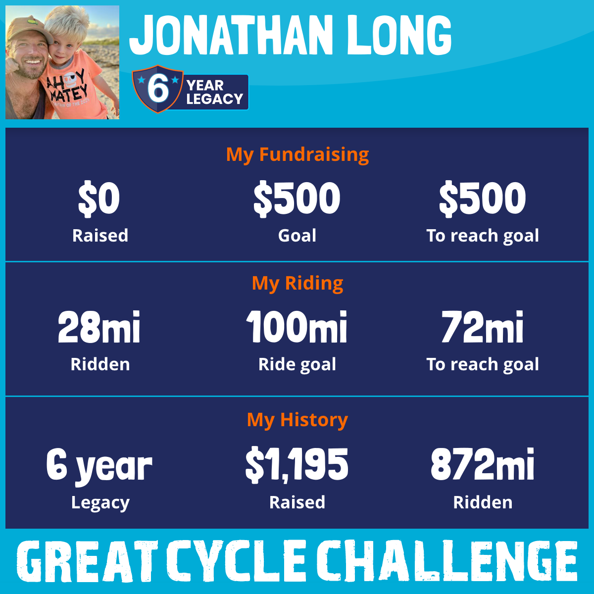 I am riding 100 mi to fight kids' cancer and save little lives. Please sponsor me to support my challenge!