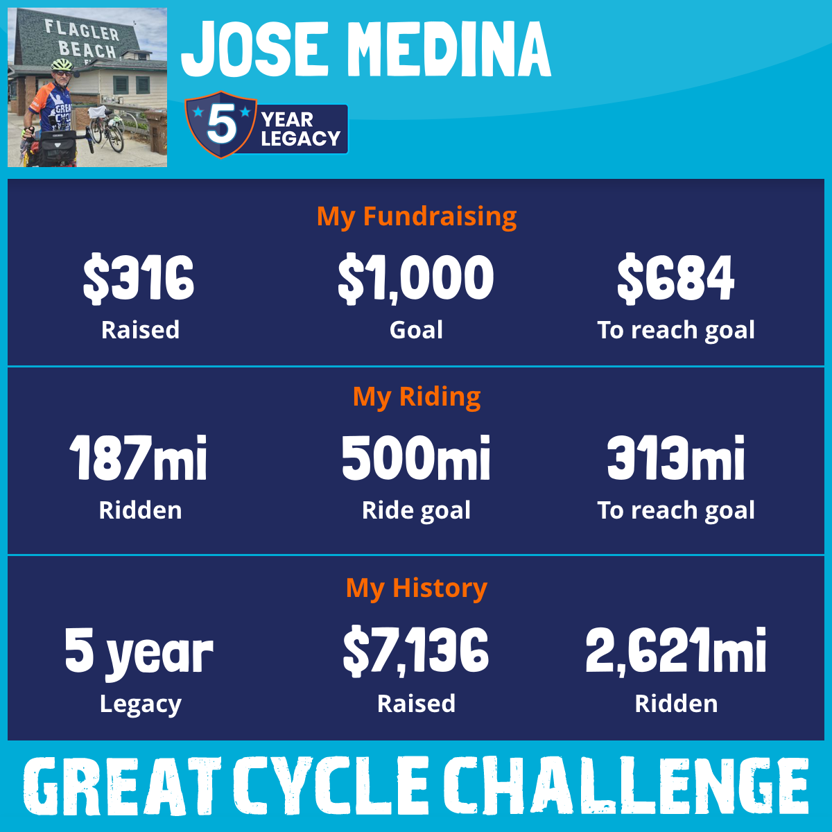 I am riding 4000 mi for Eddie, Aide, Alex, Luis, and 3 year old Rupi.. Please sponsor me and support my challenge to fight kids' cancer and save little lives.