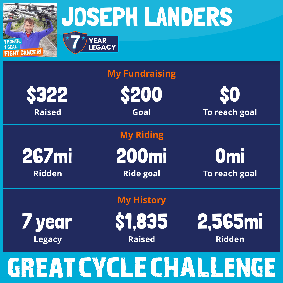 July 29, 2022: During the month of September, I will be once again taking part in the Great Cycle Challenge to fight kids' cancer!