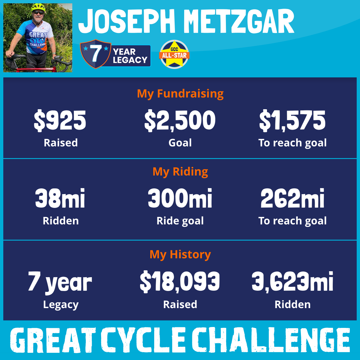 I am doing this ride in tribute to my mother, Erika Metzgar, who succumbed to cancer 10 years ago. She was a giver who would have loved this.