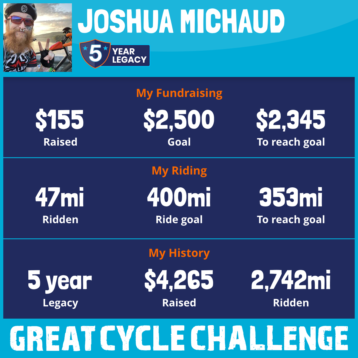 628 mi Ridden$332 Raised2025
