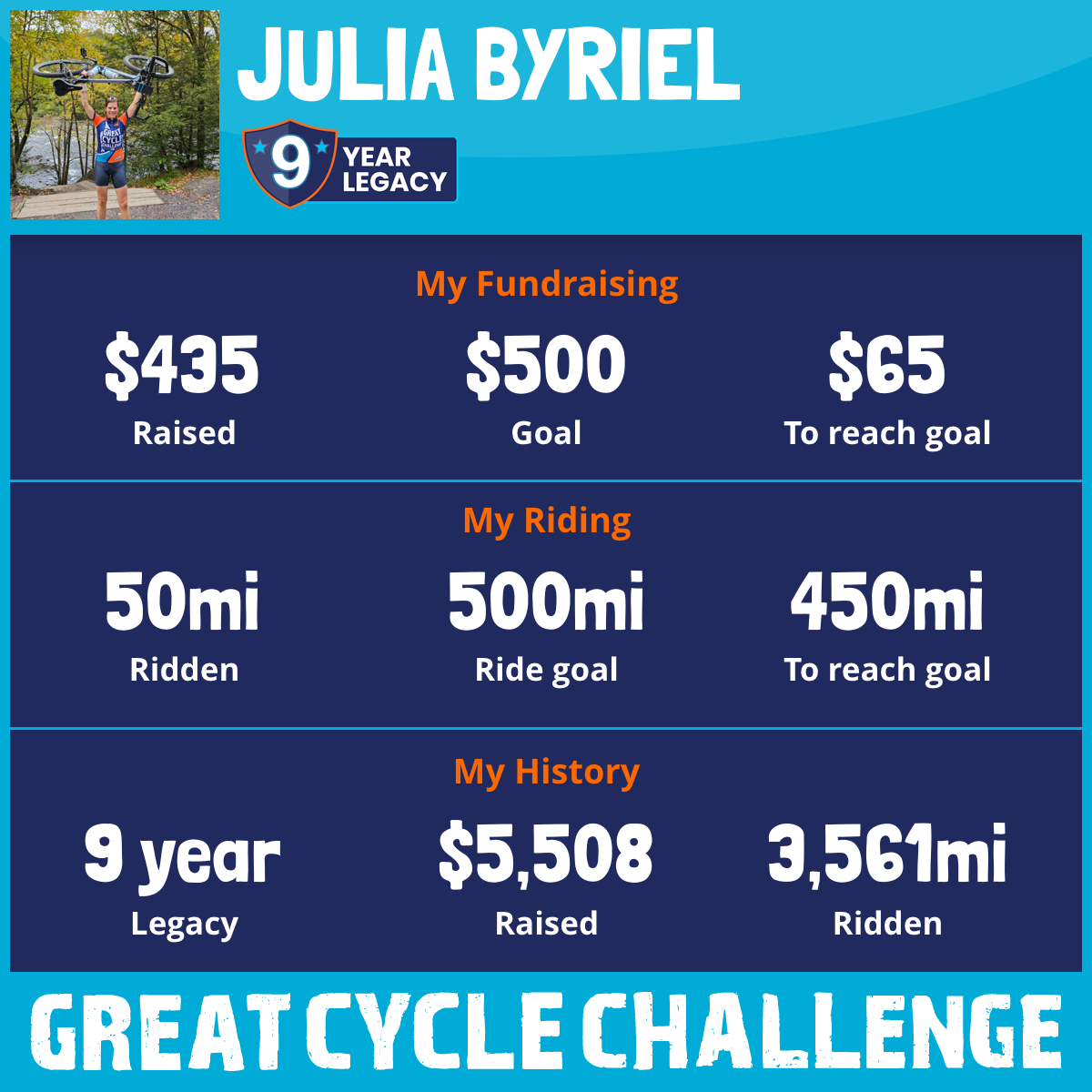 632 mi Ridden$1,376 Raised2025