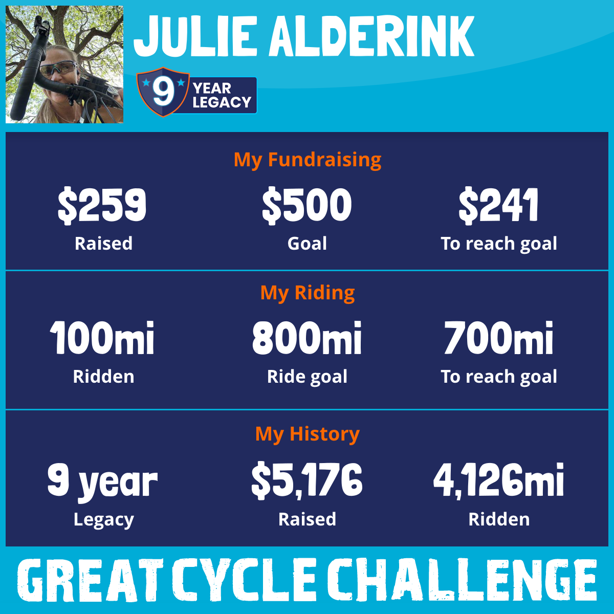 I am riding 800 mi in memory of Katey Kocer. Please sponsor me and support my challenge to fight kids' cancer and save little lives.