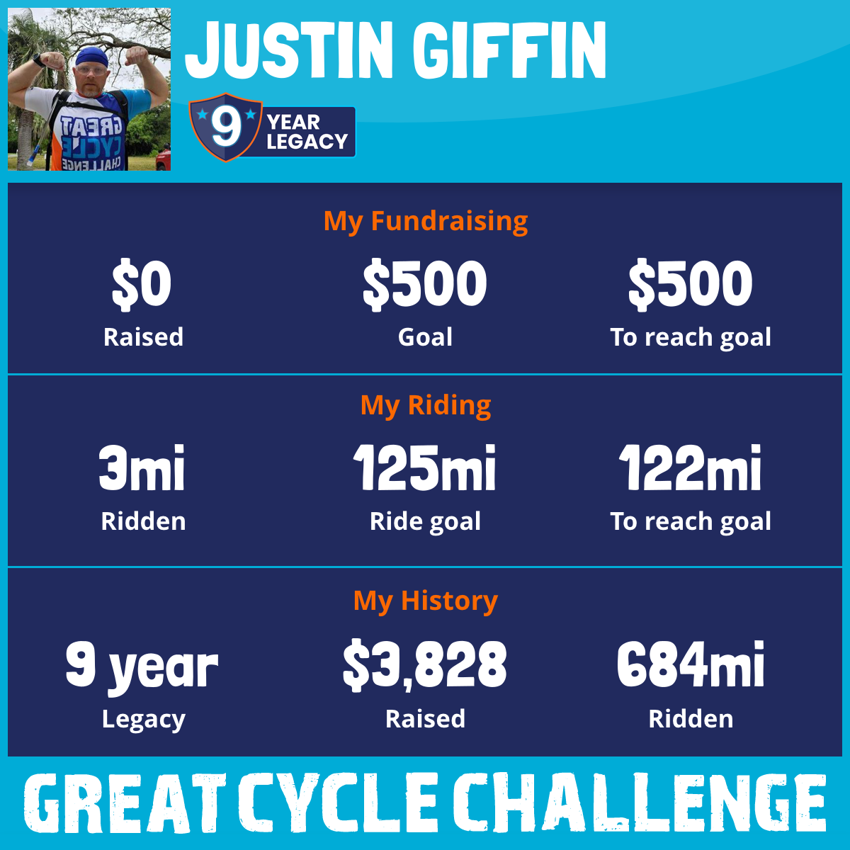I am riding 125 mi in memory of Roy Giffin. Please sponsor me and support my challenge to fight kids' cancer and save little lives.