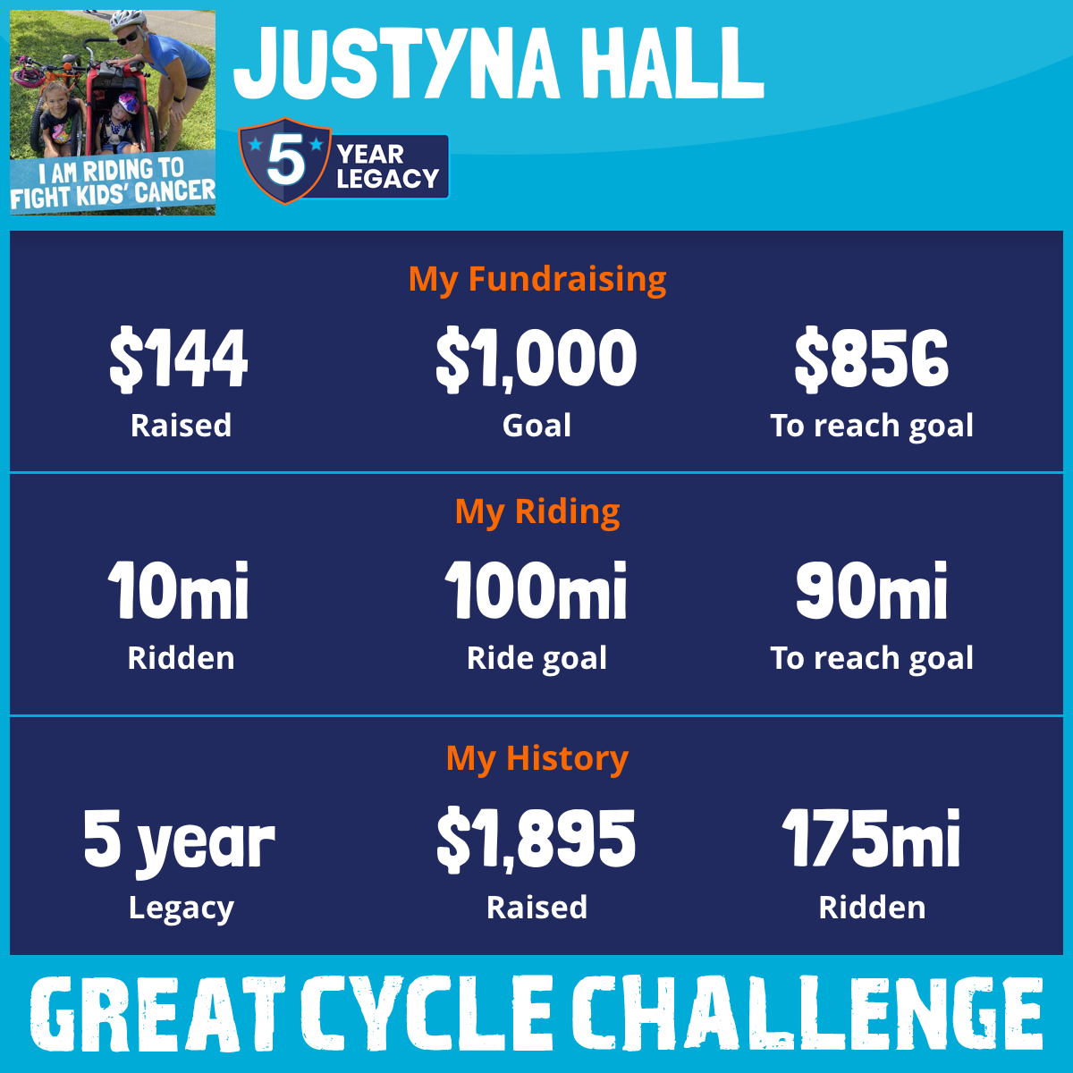This September, I am taking part in the Great Cycle Challenge to fight kids' cancer!
