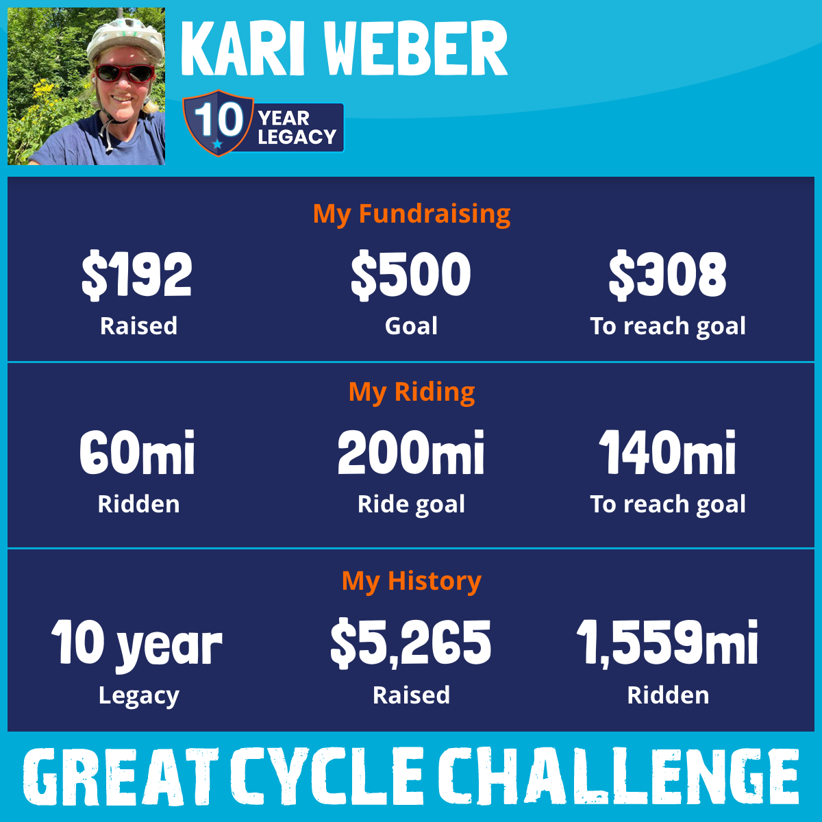168 mi Ridden$1,079 Raised2023