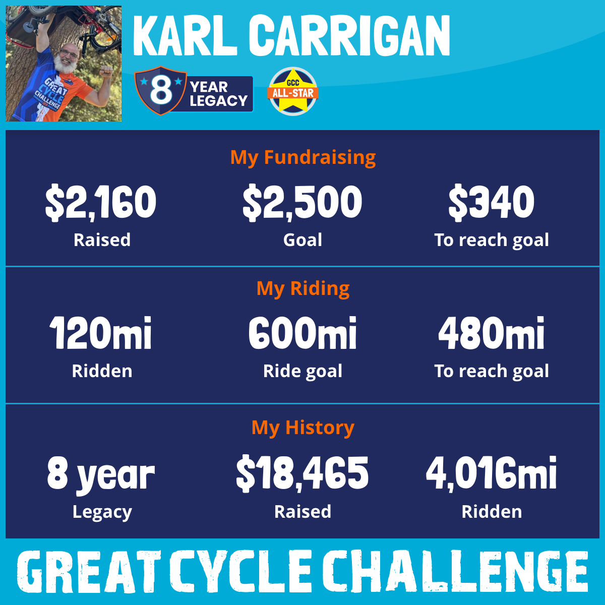 This September, I am taking part in my 8th Great Cycle Challenge to fight kids' cancer! This is my 8th Summer of Healing, my way to express gratitude for the support I received when I broke my back. Riding was one of the main ways I exercised as I regained my ability to walk.