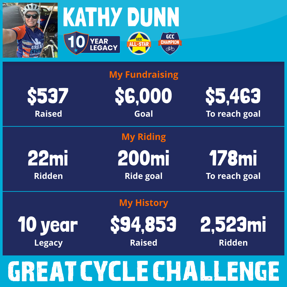 This is my TENTH year! for my favorite organization. Over 2,000 miles ridden and over $94,000 raised so far thanks to my generous donors.