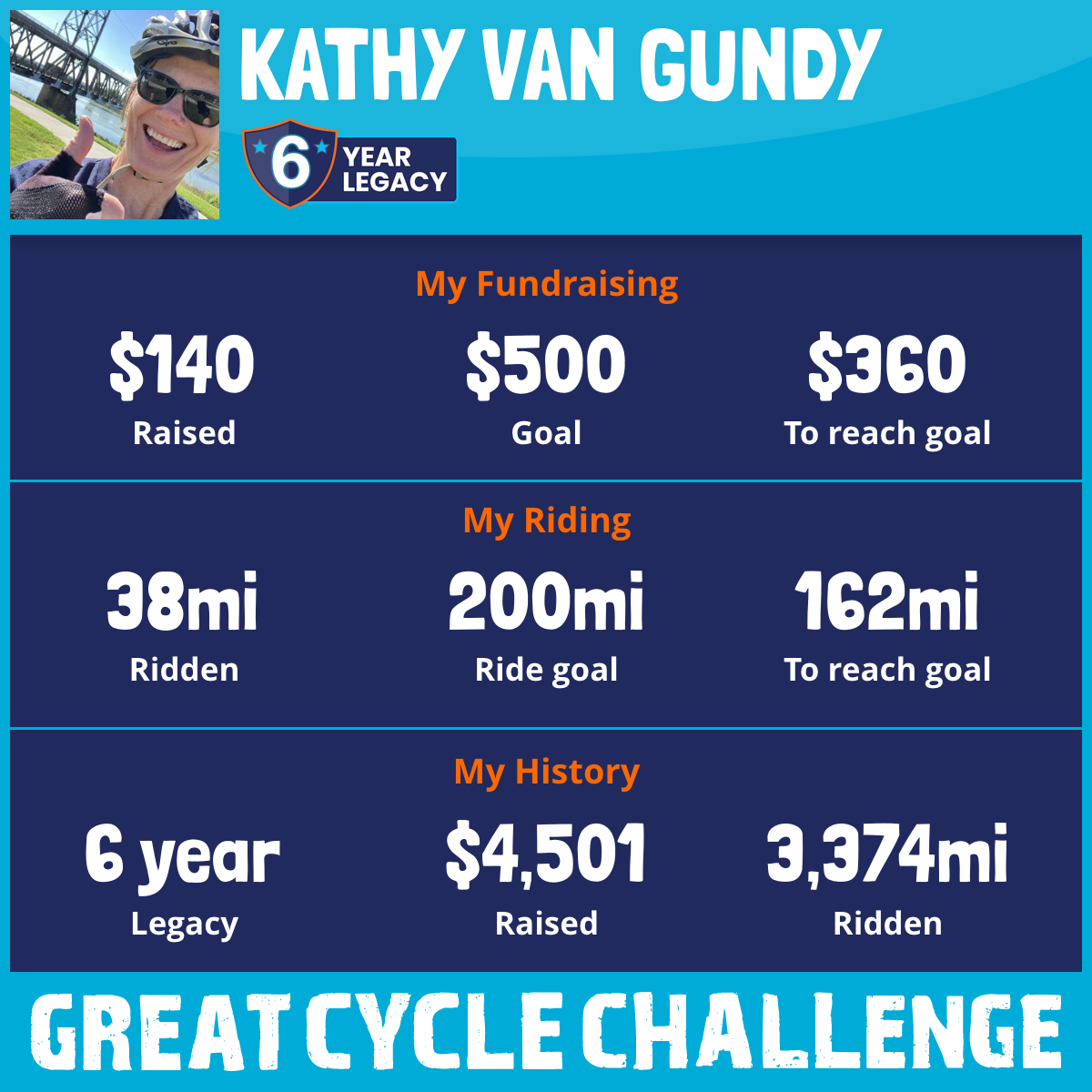 854 mi Ridden$1,115 Raised2022