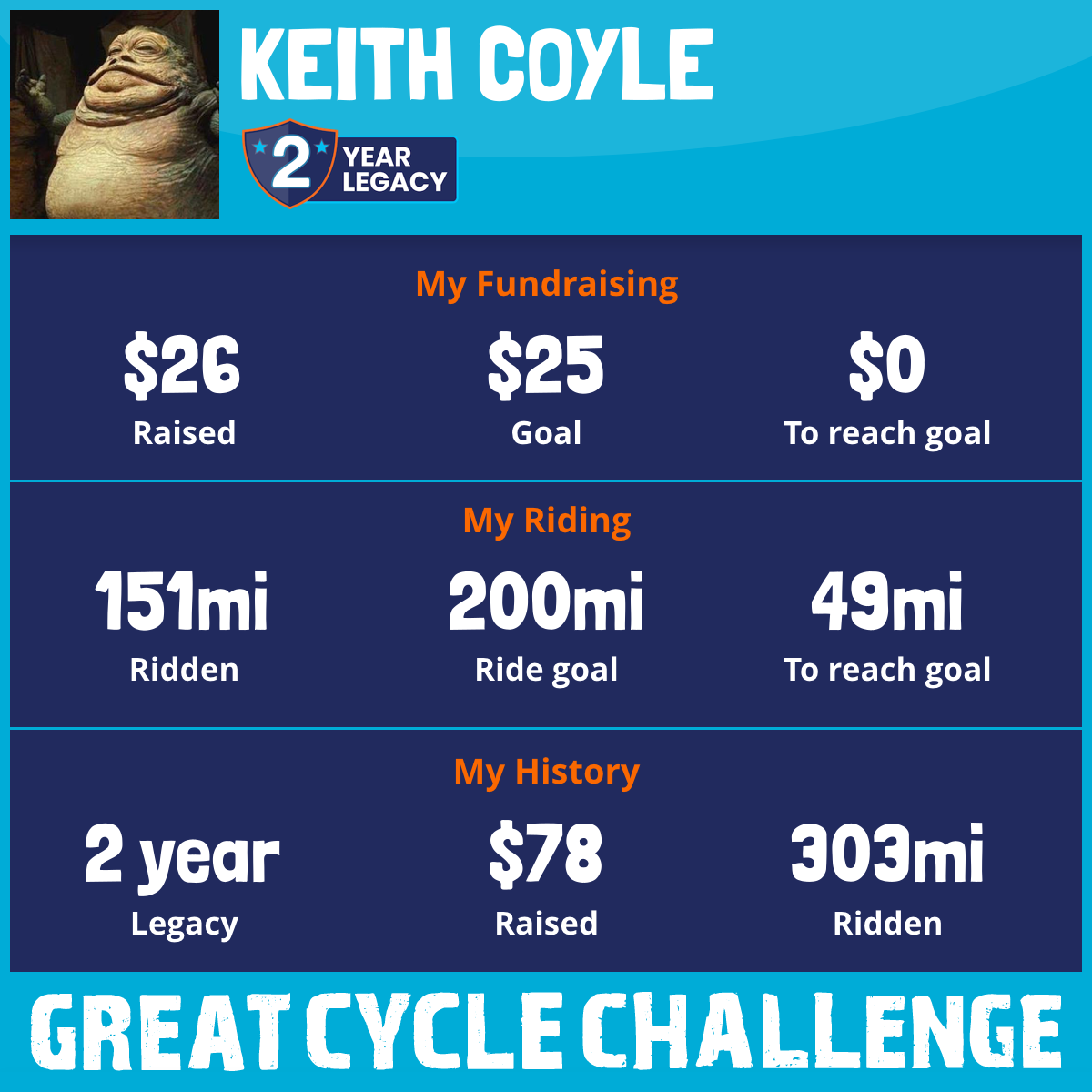 I am riding 200mi in memory of bryan coyle. Please sponsor me and support my challenge to fight kids' cancer and save little lives.