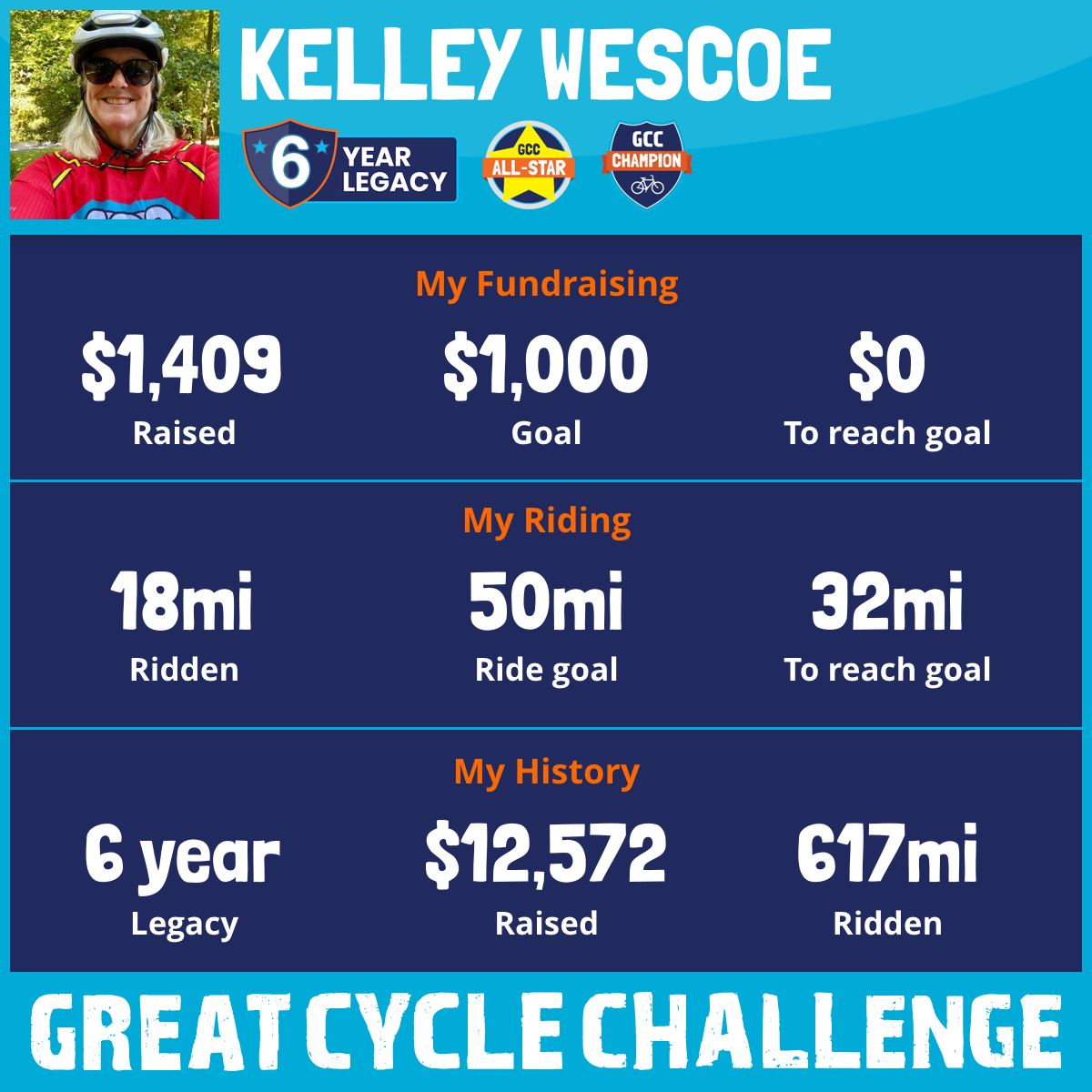 For the sixth year in a row, I am taking part in the Great Cycle Challenge to fight kids' cancer! The past five years I have ridden 599 miles. And along with my sponsors, I have raised $11,163 for the Children's Cancer Research Fund. I can't do this without YOU!