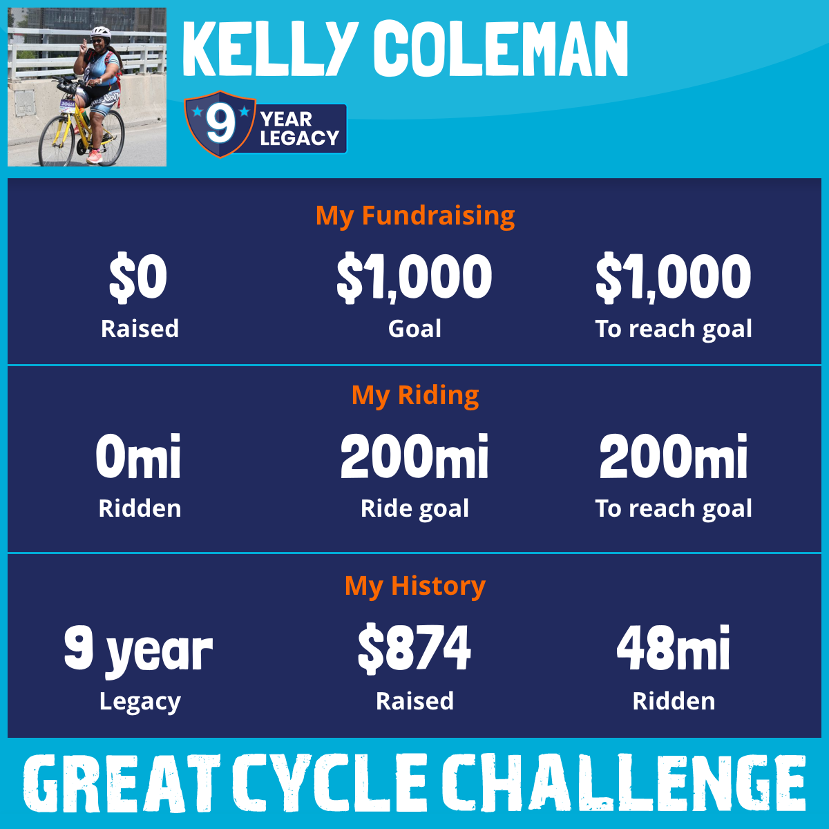I am riding 200 mi in memory of Liz Coleman. Please sponsor me and support my challenge to fight kids' cancer and save little lives.