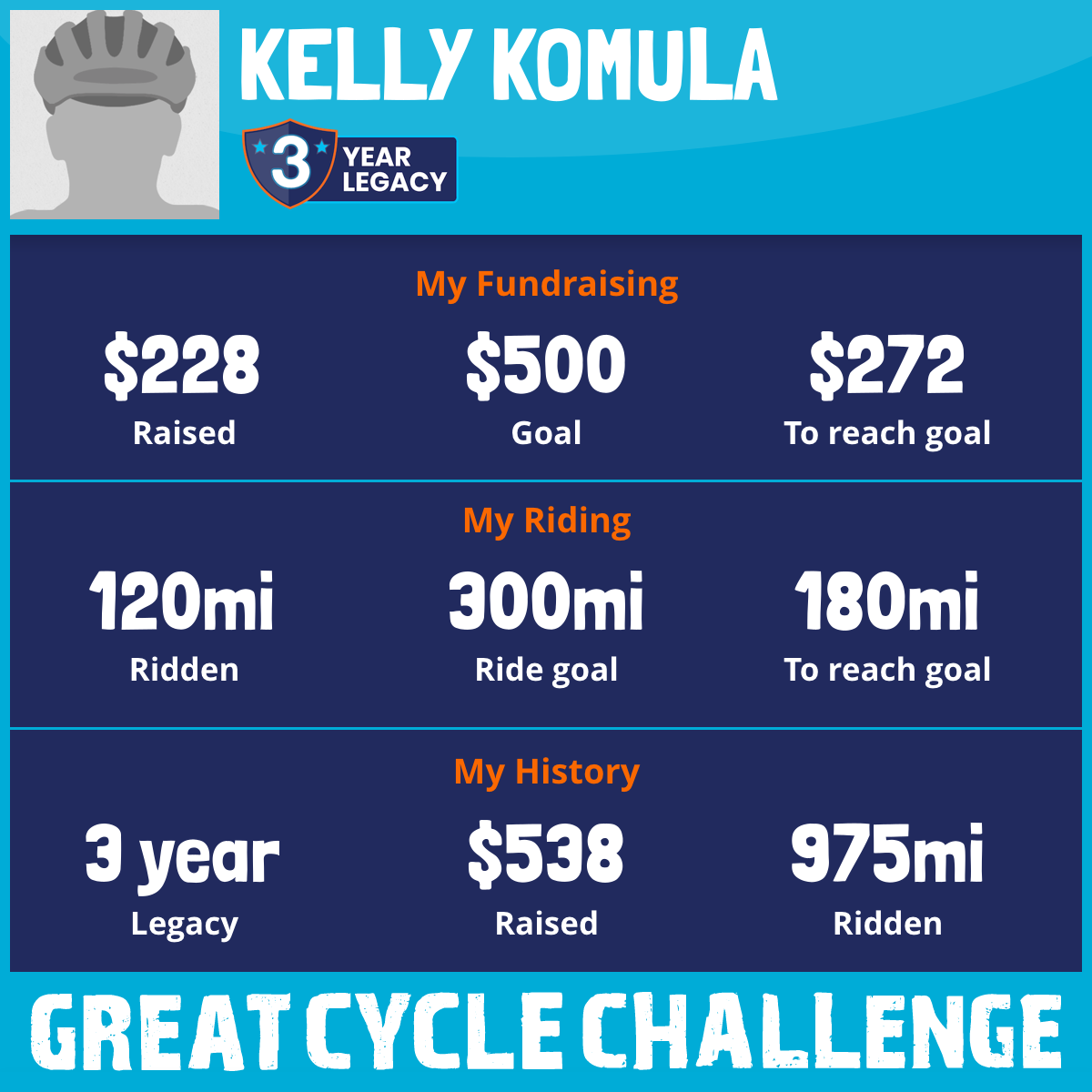I am riding 300 mi to fight kids' cancer and save little lives. Please sponsor me to support my challenge!